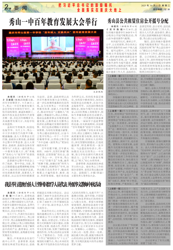 秀山一中百年教育发展大会举行