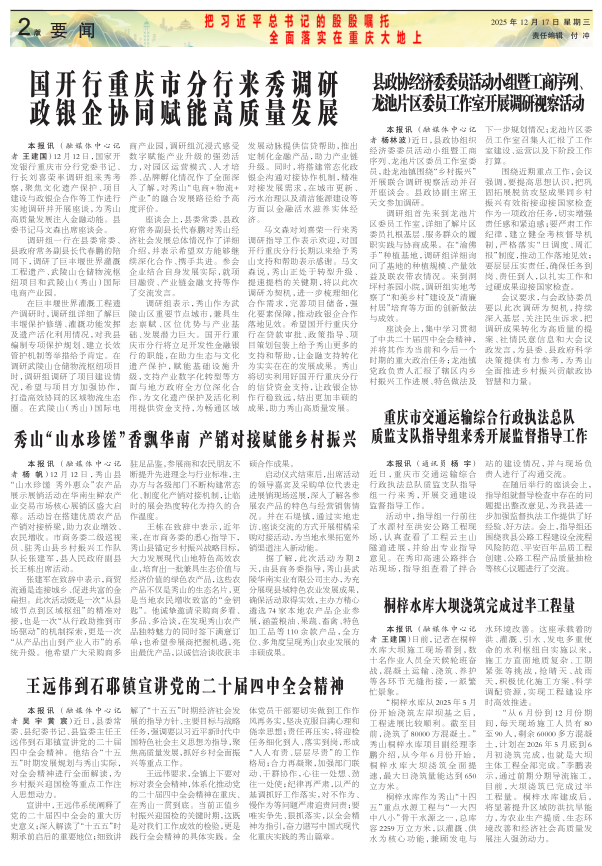 国开行重庆市分行来秀调研 政银企协同赋能高质量发展