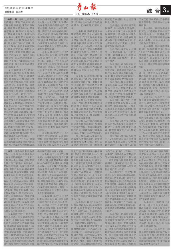 中国共产党秀山土家族苗族自治县第十五届委员会第九次全体会议决议(二〇二五年十二月十六日中国共产党秀山土家族苗族自治县第十五届委员会第九次全体会议通过)