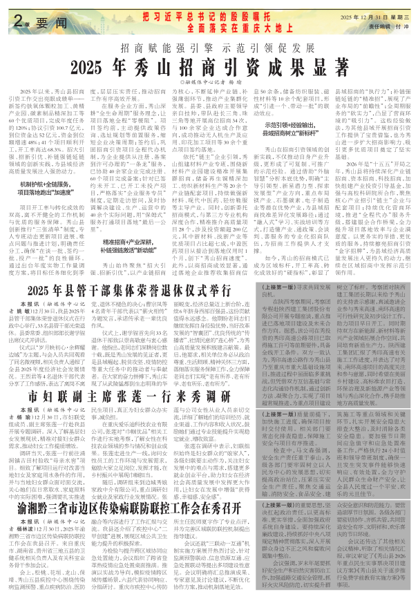 招商赋能强引擎 示范引领促发展 2025年秀山招商引资成果显著