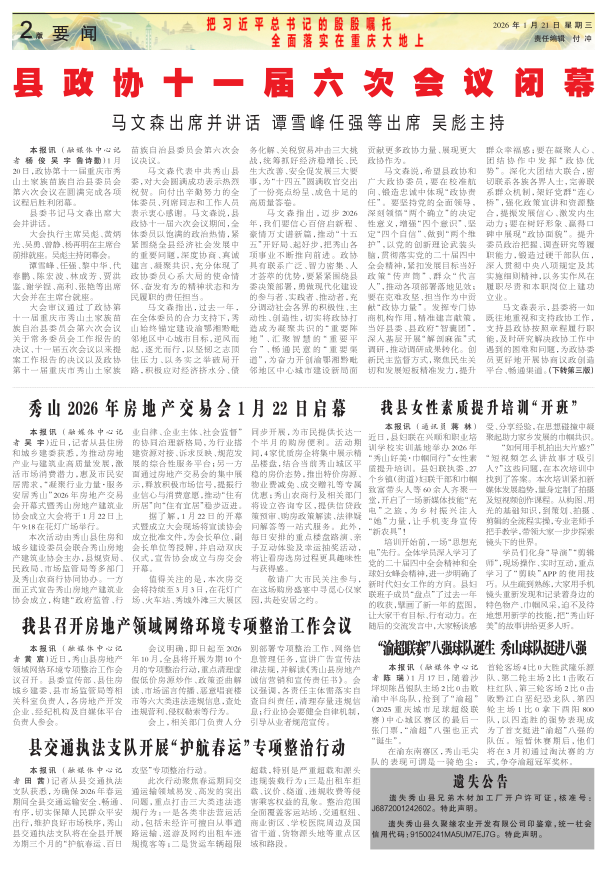 县政协十一届六次会议闭幕 马文森出席并讲话 谭雪峰任强等出席 吴彪主持