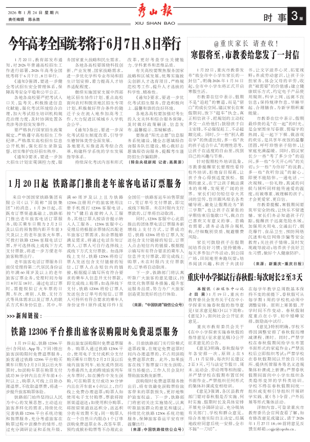 @重庆家长 请查收!寒假将至,市教委给您发了一封信