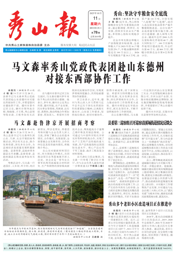 秀山:坚决守牢粮食安全底线