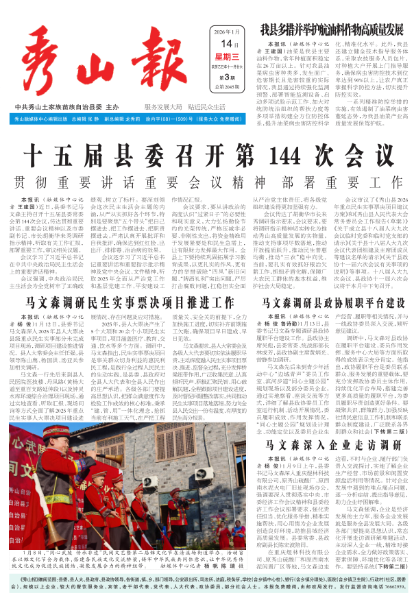 图片新闻 马文森深入企业走访调研 马文森调研县政协履职平台建设 马文森调研民生实事票决项目推进工作 十五届县委召开第144次会议 贯彻重要讲话重要会议精神 部署重要工作 我县多措并举护航油料作物高质量发展