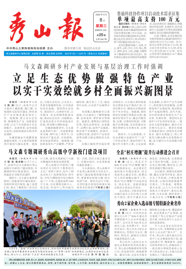 马文森调研乡村产业发展与基层治理工作时强调 立足生态优势做强特色产业 以实干实效绘就乡村全面振兴新图景
