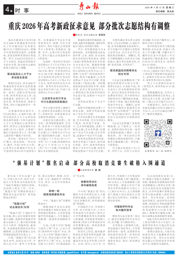 重庆2026年高考新政征求意见 部分批次志愿结构有调整