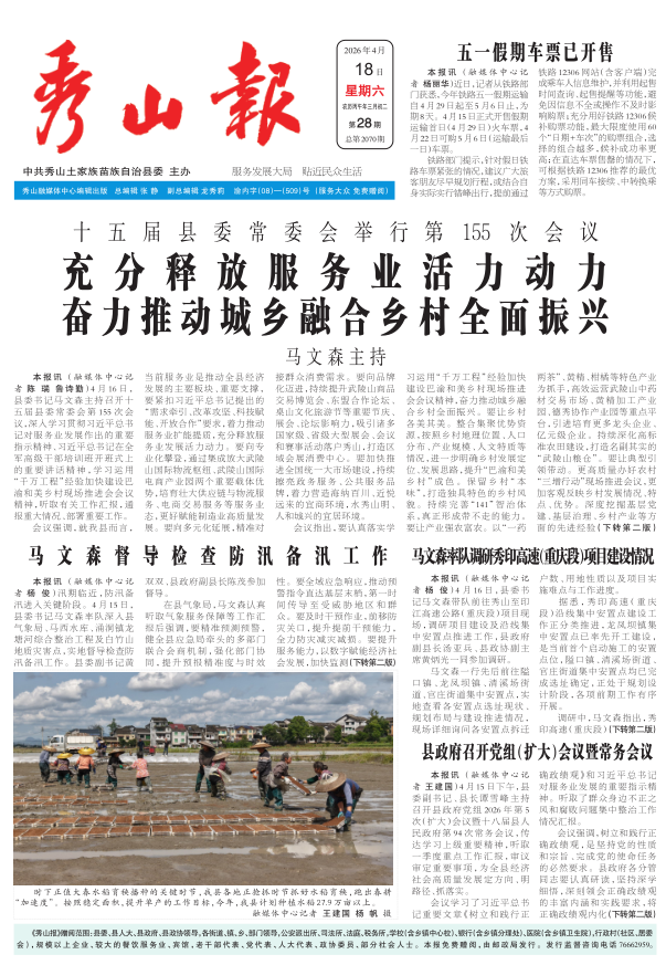 十五届县委常委会举行第155次会议 充分释放服务业活力动力 奋力推动城乡融合乡村全面振兴 马文森主持