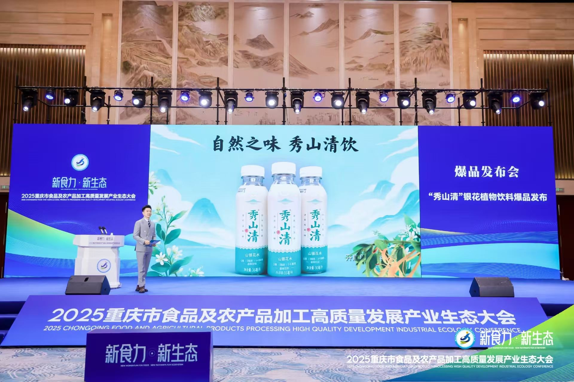 在2025重庆市食品及农产品加工高质量发展产业生态大会的“爆品”发布环节,“秀山清”银花植物饮料爆品发布,惊艳亮相。“秀山清”银花植物饮料爆品的发布,为消费者提供了新的健康选择,更以“爆品”之力推动秀山山银花从“土特产”向“国民级饮品原料”跨越,为区域特色产业高质量发展增添了新动能。