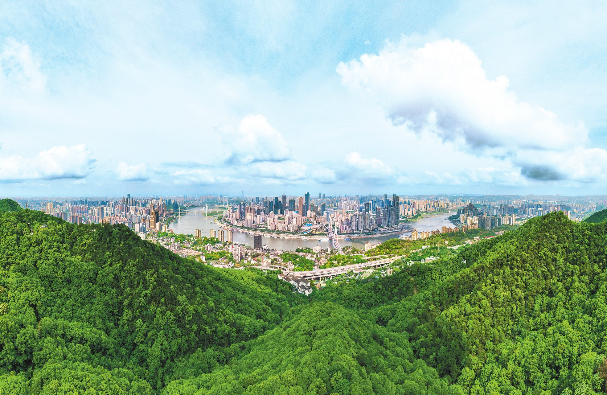 从南山眺望蓝天白云下的重庆城区。(重庆日报资料图片) 记者 谢智强 摄/视觉重庆