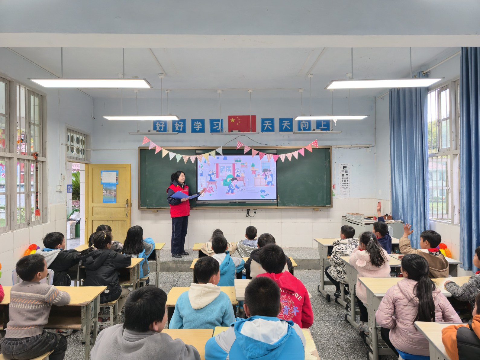 课堂上,队员们结合孩子们日常接触的家庭、校园、户外等场景,清晰梳理不同环境下的用电安全底线。从“不随意触碰插座插孔”“湿手不碰电器”等基础常识,到户外遇到电线脱落如何避险等实用技巧,用儿童易懂的语言细致讲解。在互动提问环节中,队员们通过双向交流引导孩子们主动思考、积极回应,让安全用电知识真正扎根于心。