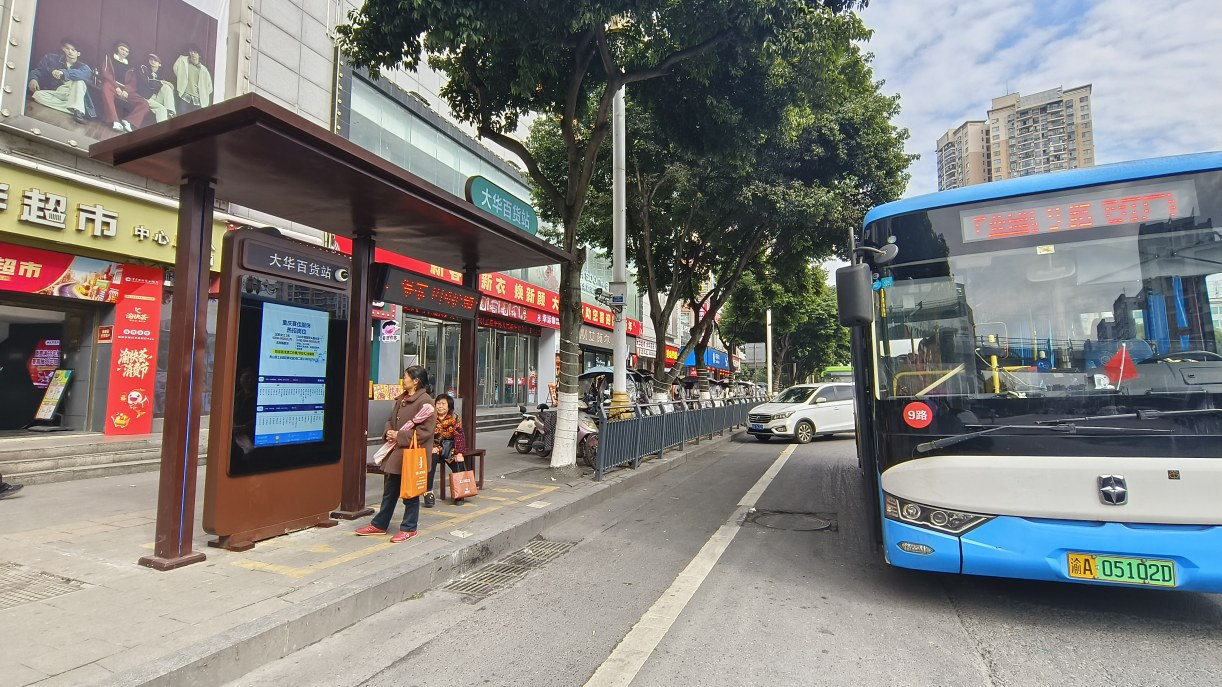 “以前我们在公交车站等车的时候不晓得要等好久,心里面比较慌。现在不一样了。有了这个电子站牌,车子还有几站到,要多久都显示得清清楚楚。等车的时候心里很踏实,还可以有时间去买点东西。”市民龙梅英说。智慧屏实时显示公交到站时间、线路信息,有效减少乘客候车焦虑,让候车过程更舒适。