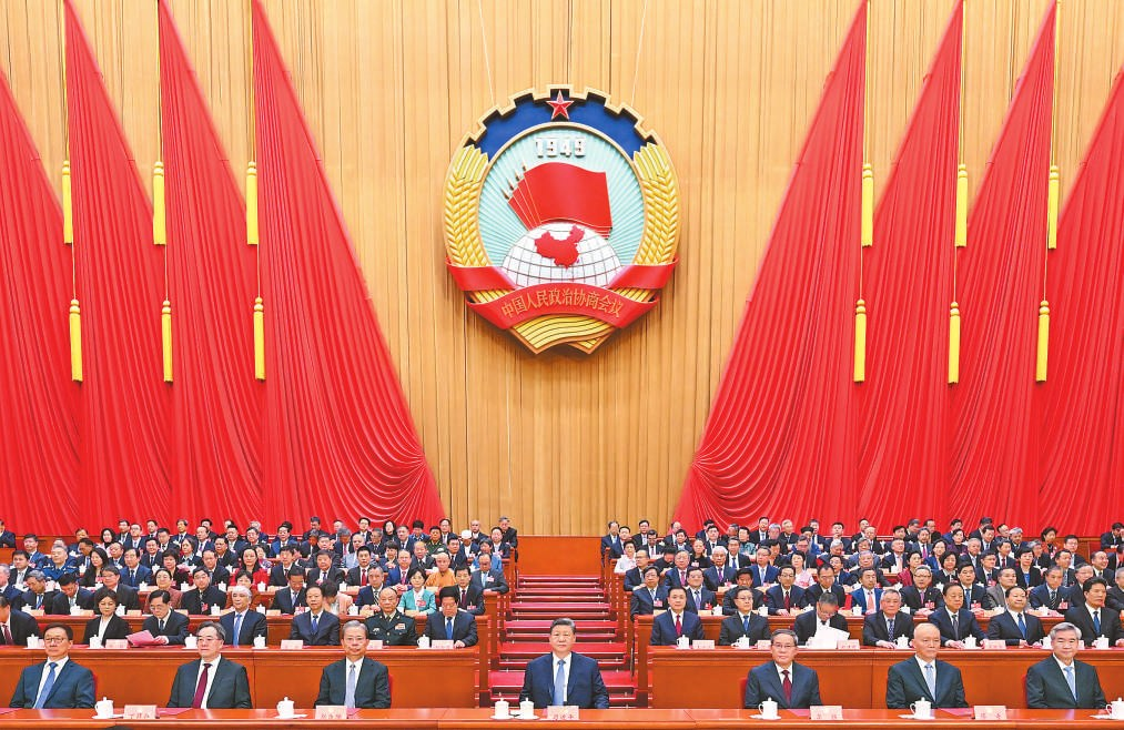 3月11日上午,中国人民政治协商会议第十四届全国委员会第四次会议在北京人民大会堂闭幕。全国政协主席王沪宁主持闭幕会并讲话。新华社记者 黄敬文 摄