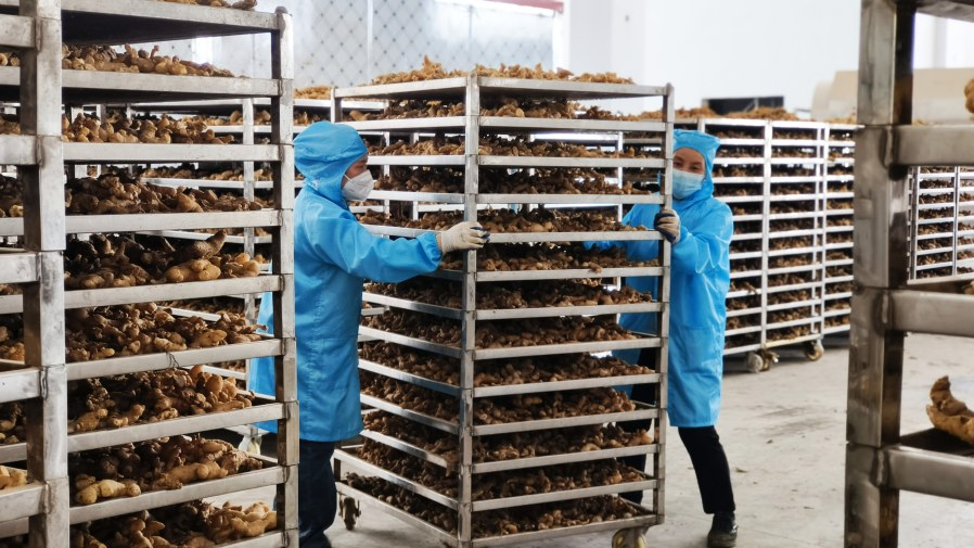走进平凯街道重庆市九华府农业有限公司(以下简称九华府公司),黄精初加工生产线高效运转,滚筒清洗、高温杀青、修剪去须、智能烘干等工序一气呵成。该企业是秀山从安徽引进的黄精加工厂,占地102亩,总投资约1.6亿元。